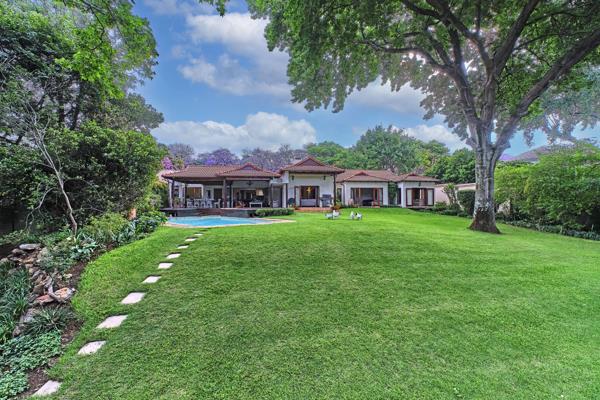 A magnificent Afro-Bali inspired home in a quiet, secure position!. Located in Parkmore, on the boundary with Hurlingham,this home offers a tranquil retreat in a bucolic setting. Nestled on an expansive stand, with rolling lawns and large established trees, this property is situated in sought after Lower Sandhurst, offering security with unmatched convenience.