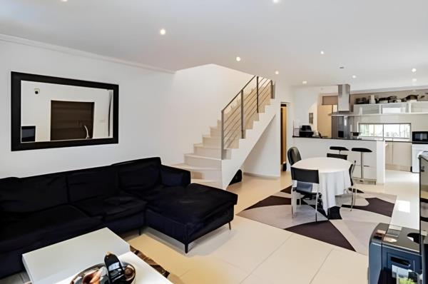 The lounge leads out to a private garden with a lovely splash poolideal for entertaining or unwinding after a long day.