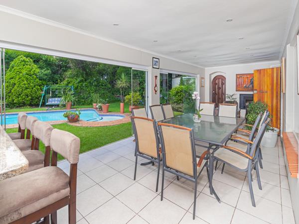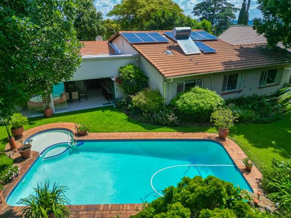 The heart of this home is the spectacular large enclosed patio, seamlessly blending indoor and outdoor living. Complete with a dedicated bar area, its the ultimate venue for year-round entertaining, weekend braais, and making memories with loved ones. Just outside, your private sanctuary awaits: a sparkling pool set within a lush, established garden, offering a serene retreat for relaxation and play.