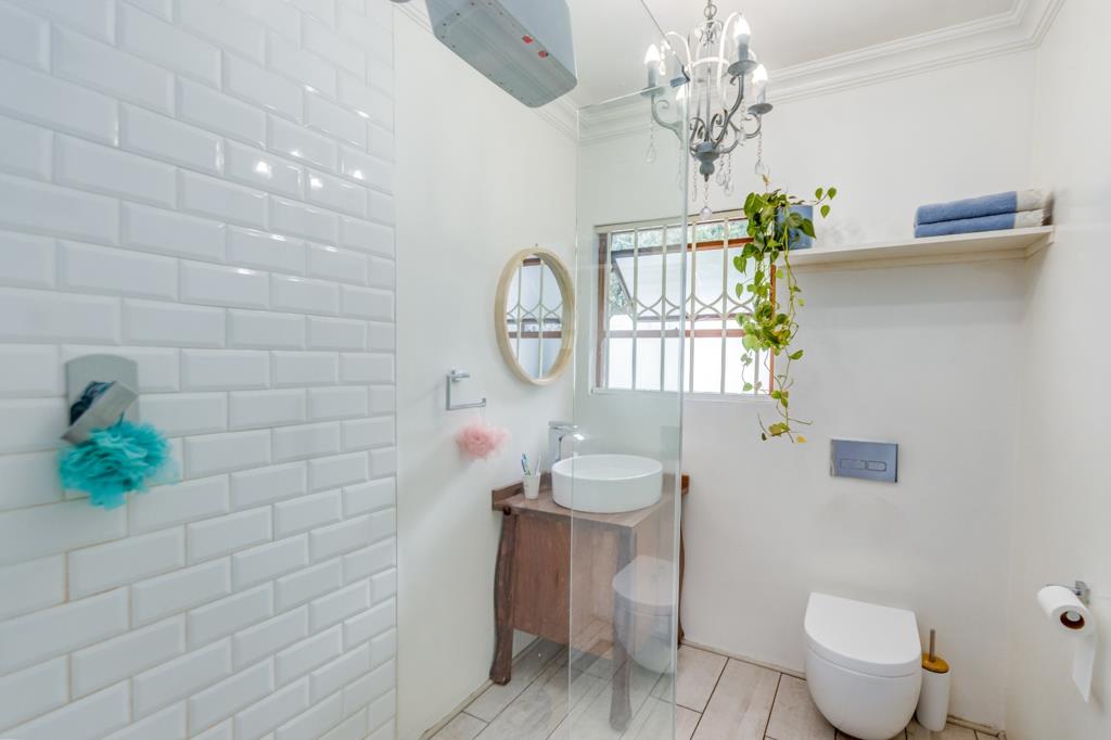 A standout feature is the impressive separate poolside entertainment pavilion, designed for the enthusiastic entertainer. This versatile structure includes glass stack doors, exposed trusses, a built-in braai and bar area, a separate bathroom, and room that can be used in various ways. Just beyond this pavilion, a beautifully designed firepit boma awaits complete with a convenient gas braai making it perfect for hosting unforgettable gatherings under the stars. This entire structure also offers excellent flexibility and can easily be repurposed as a cottage if needed.