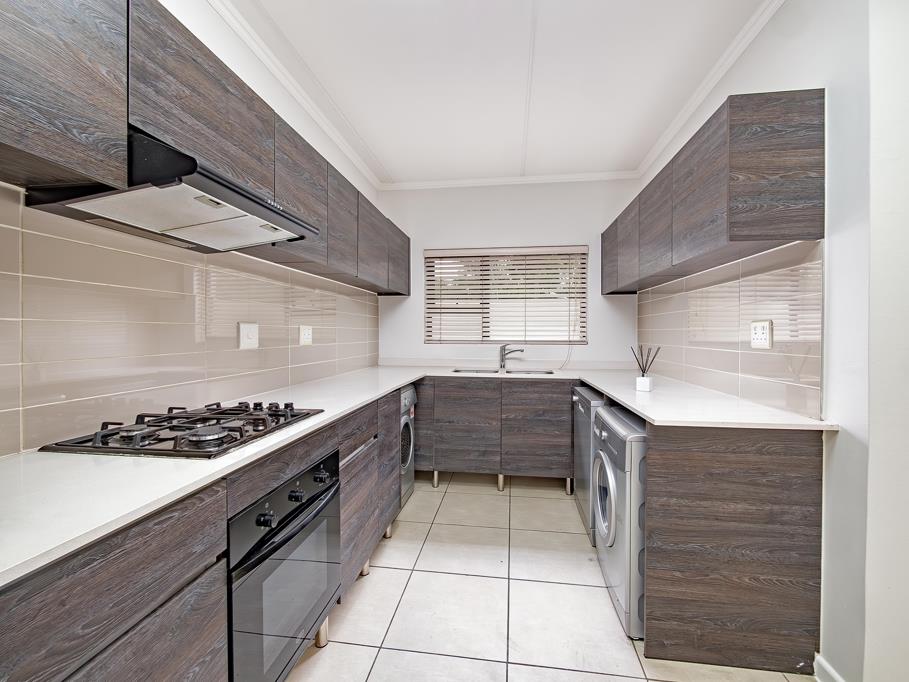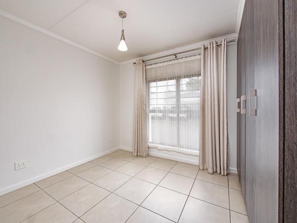 This beautifully maintained ground-floor apartment offers the perfect secure estate living and has been upgraded to perfection. Featuring three spacious bedrooms, this home is ideal for families, professionals, or investors seeking a move-in-ready property. Step into a fully tiled interior with a bright and airy living area that flows seamlessly through sliding doors onto a covered patio, overlooking a well-landscaped private garden complete with an irrigation systemperfect for outdoor relaxation or entertaining. The well-equipped kitchen features a gas stove and hob, extractor fan, and three plumbing points, providing ample space for your appliances. The main bedroom includes built-in wardrobes and a private en-suite bathroom. The two additional bedrooms also offer built-in wardrobes and share a modern full bathroom.