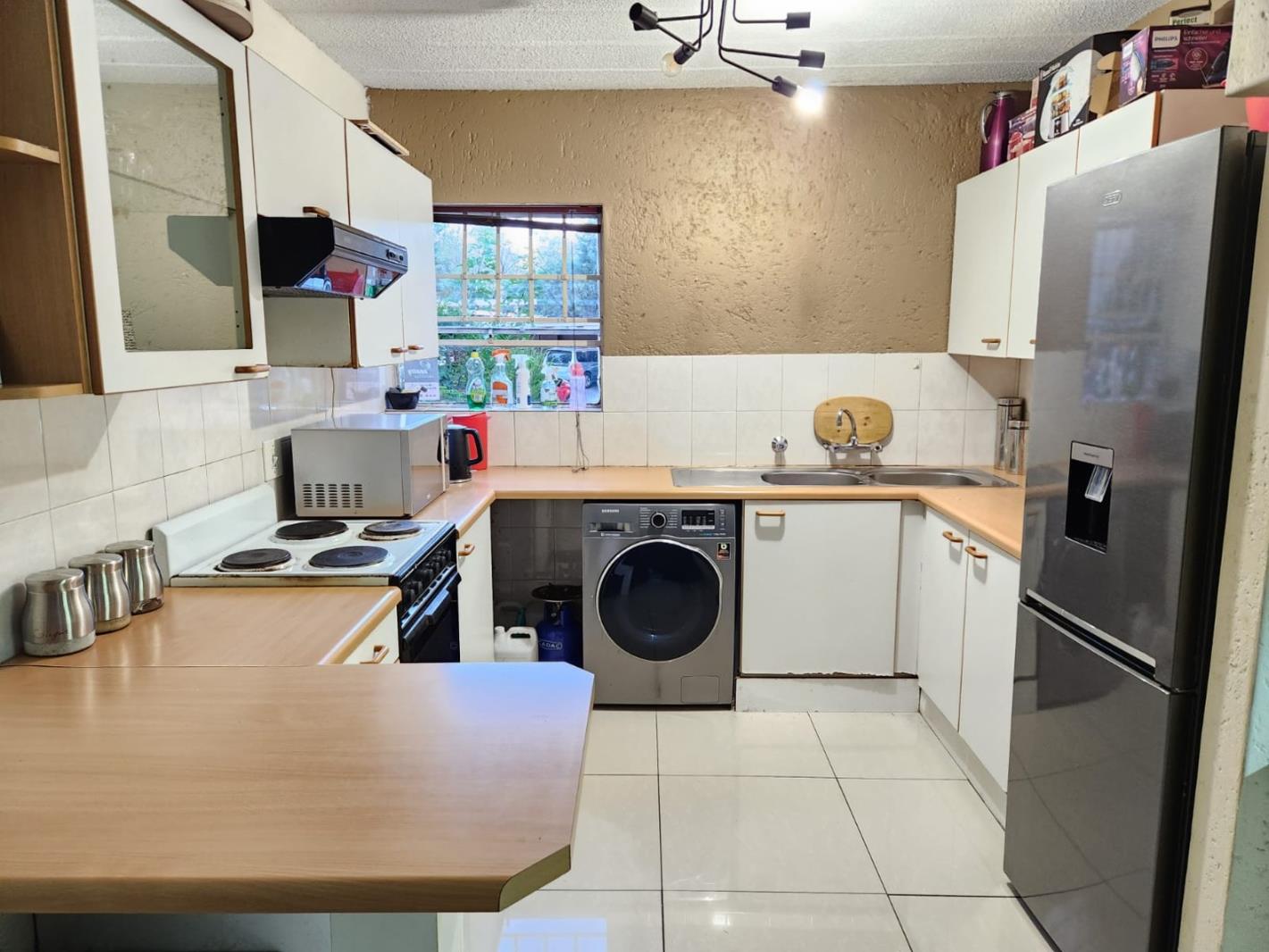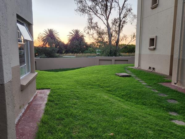 Welcome to this charming two-bedroom apartment offering an inviting blend of space, comfort, and potential. The open-plan layout features a well-appointed kitchen with wooden countertops, space for one appliance and ample cupboard space, flowing seamlessly into a spacious lounge area. The lounge leads out to a generously sized covered patio, perfect for relaxing or entertaining, with direct access to an open communal garden.