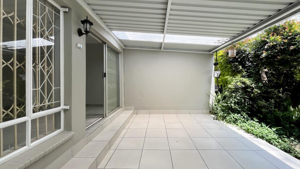 Security is a priority, with features including an alarm system, electric fencing, and an access gate, all contributing to a secure living environment within a complex. Burglar bars on windows and security gates on sliding doors provide additional peace of mind. Located in the desirable suburb of River Club, Sandton, this property offers convenient access to local amenities and a tranquil residential setting.