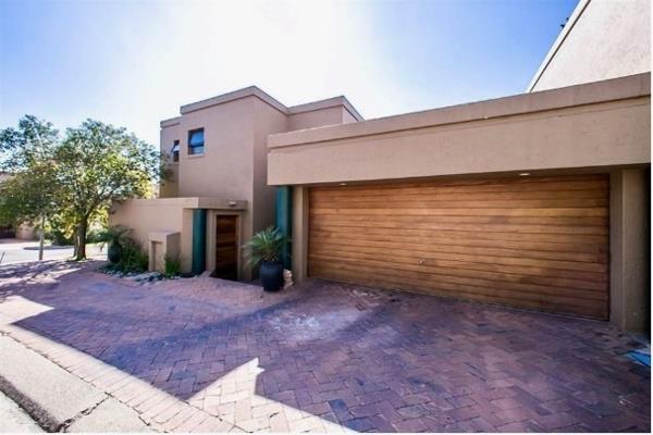 Presenting an exceptional residential opportunity within a secure complex in the esteemed River Club, Sandton. This modern, multi-level property, spanning 257.00 sqm on a 355.00 sqm erf, offers a sophisticated suburban lifestyle. The exterior boasts a contemporary aesthetic with a tan/beige finish, complemented by a prominent wooden double garage door and a paved brick driveway, ensuring a distinguished first impression.