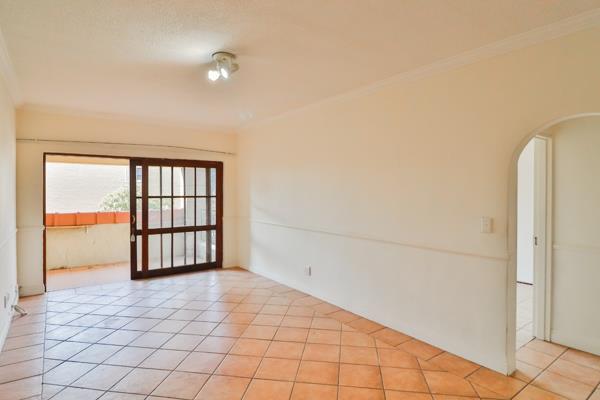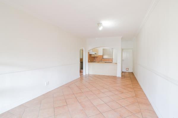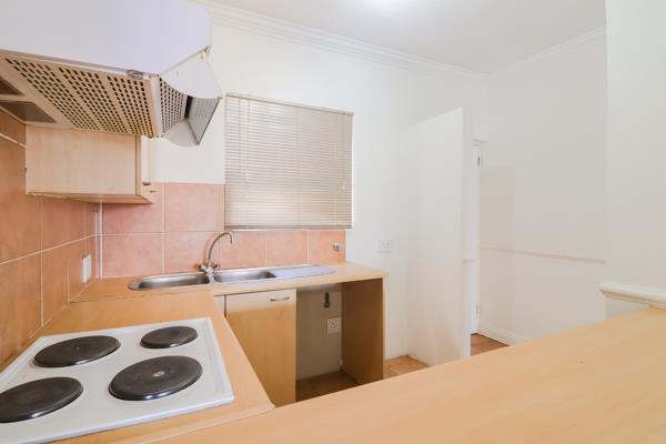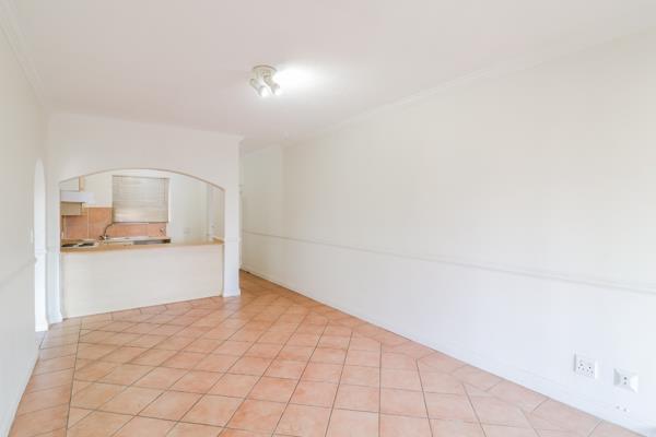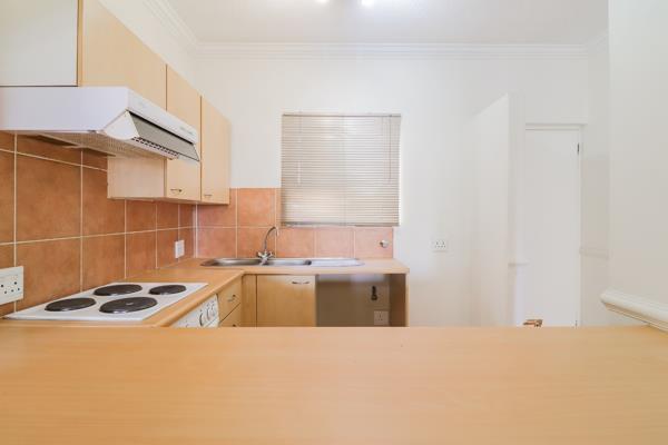 Appealing 1 bedroom apartment offering an airy sense of light and space. Open-concept kitchen with good flow to the neutrally tiled reception area with wooden slider to the balcony and overlooking the pretty leafy complex. One bright tiled bedroom. Full bathroom with vanity, basin, bath and shower. Centrally positioned in the complex for peace and security.