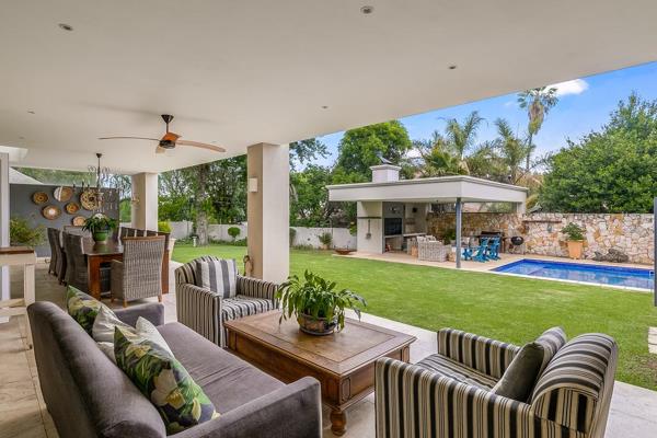 The large pool house has a gas braai, speakers and tv, totally equipped for entertaining. The pool has an automatic pool cover.