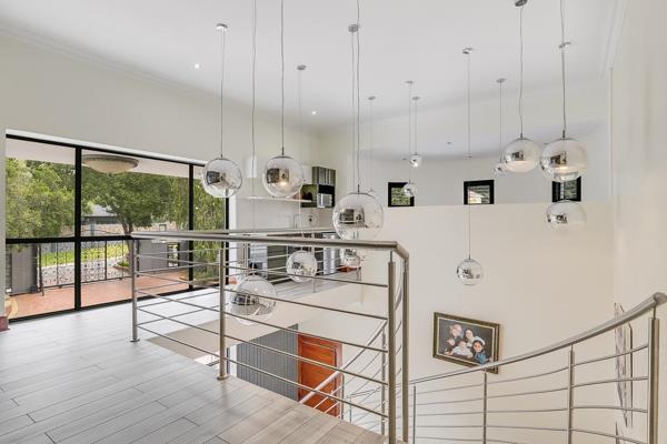 The grand eye catching contemporary designer facade leads to a double volume entrance hall with dazzling chandelier and elegant sweeping stair case.