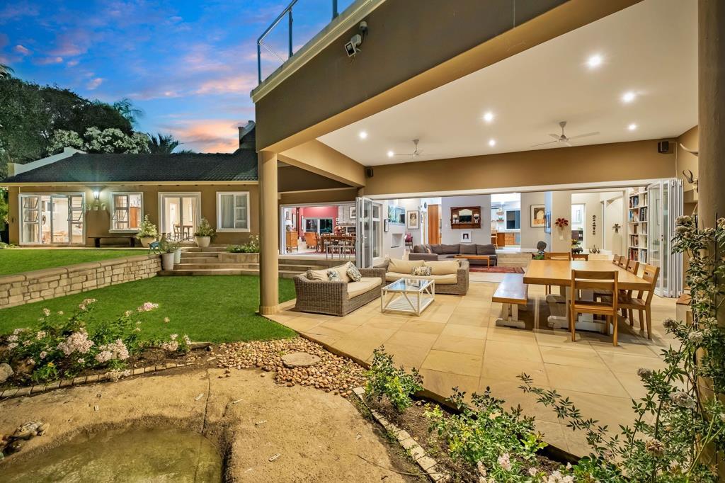Spectacular home in a fabulous location. This welcoming family home, set in an oasis like garden on the doorstep of central Sandton offers all the amenities a growing family could ask for. A charming entrance hall takes you through to the open plan tv room / kitchen / dining room and a further lounge. All with stacking doors out onto the undercover patio, pool and garden. Light. bright and airy, the pictures say it all. A feature fireplace in the formal lounge area, an enchanting fish tank, views of the pretty garden all make you want to linger longer! The chefs kitchen offers an eat in section a large scullery area with access to the garages and plenty of cupboard and counter space. There is also a separate wine room for cozy winter nights. One bedroom ensuite downstairs as well as a large study, also with doors out onto the garden complete the ground floor. Upstairs offers 3 large bedrooms, 2 ensuite. The primary suite has a beautiful dressing room, modern bathroom and doors out onto the large patio. There is a further bedroom ensuite also with doors onto the patio and third bedroom and bathroom, with doors to the patio. The home also offers a separate studio complete with steam room and sauna as well as stacking doors onto the undercover patio and pool. There is a gorgeous staff flatlet as well as three garages. A borehole and solar and inverter for back up water and electricity. Truly a gem of a home!