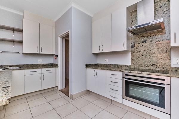2 Bedrooms, 2 bathrooms, kitchen, open plan lounge and dining room, courtyard, garage and garden. It is also an established, quiet complex, with a communal swimming pool and many visitors parking bays. One can enjoy walks around the neighborhood and Field and Study is close by too.