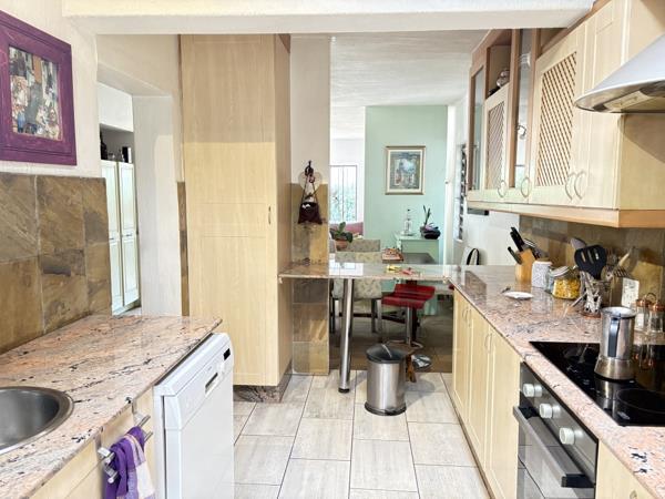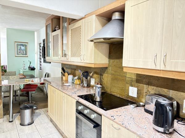 The separate kitchen offers generous cupboard space and accommodates two wet under-counter appliances along with a single-door fridge.