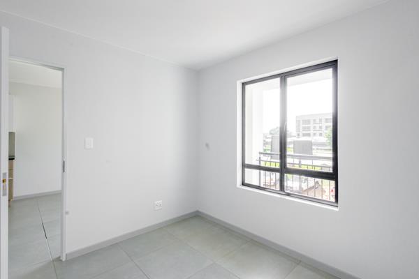 Modern 1st floor apartment with top finishes, open plan living and load shedding backup options available.