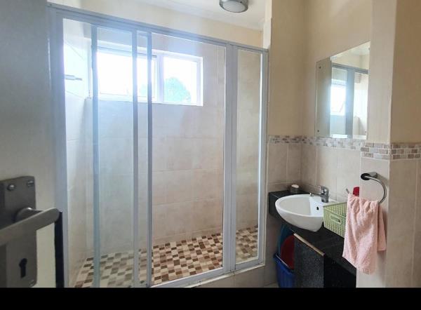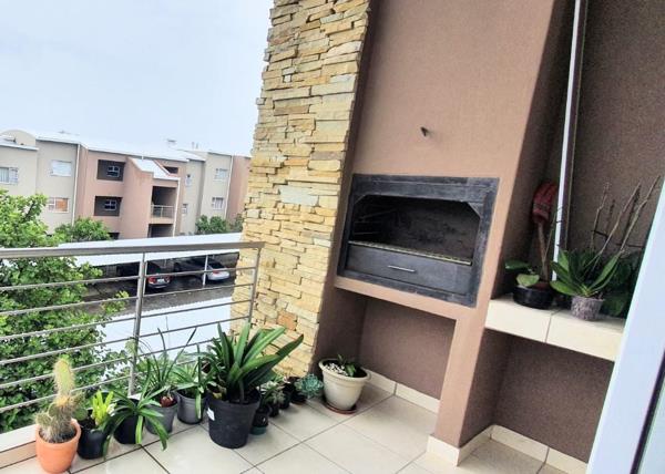 open plan lounge and dining area that opens onto the balcony that has a well fitted braai area