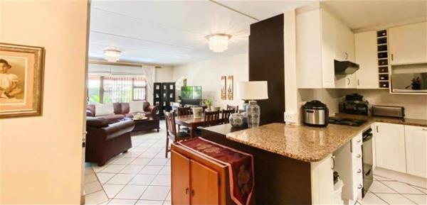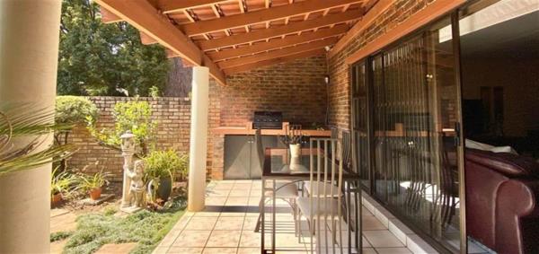 The inviting open plan reception area leads out onto a covered patio with a built-in gas braai. perfect for entertaining.