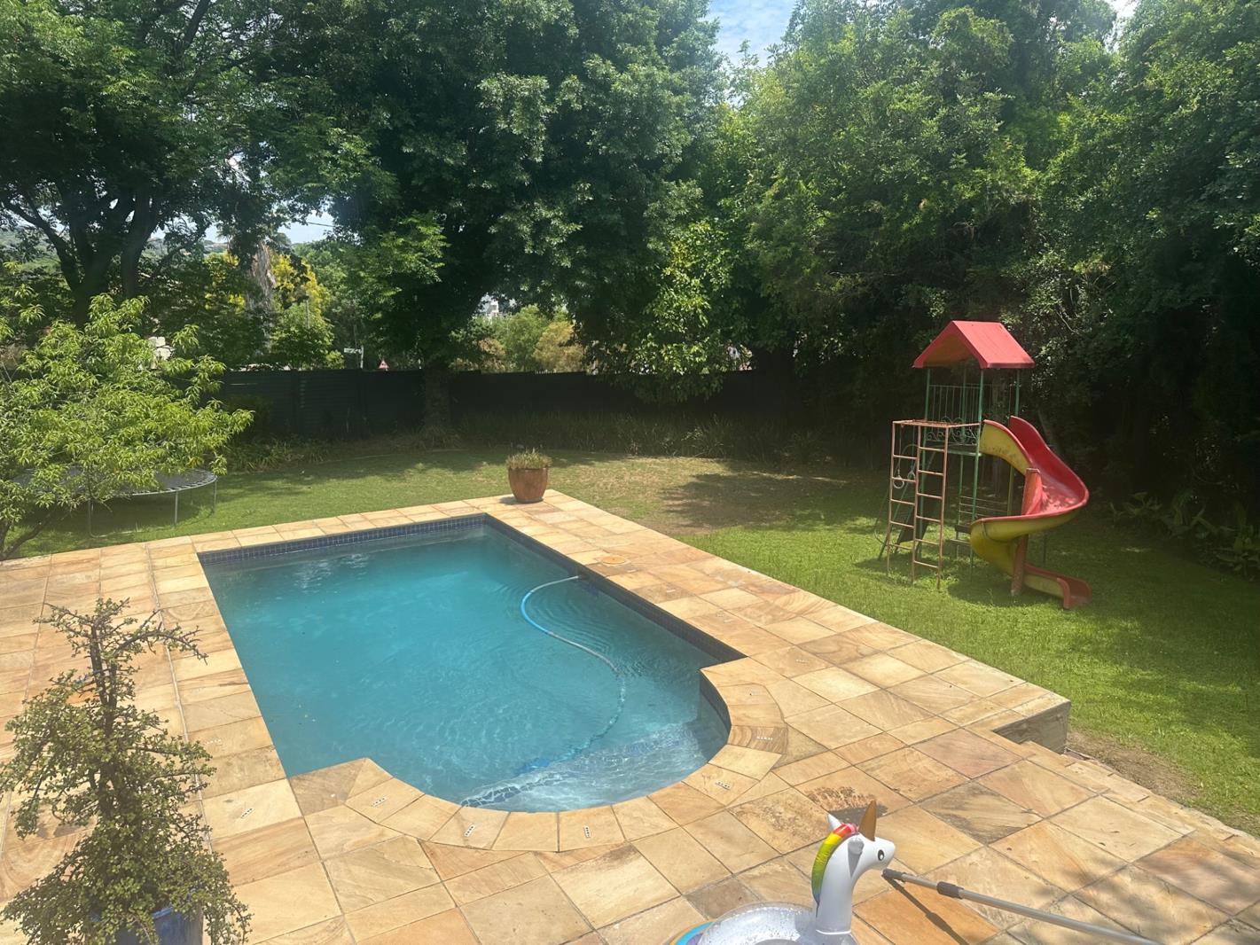 A beautifully maintained 4 Bedroom family home with large expansive garden, a spacious covered patio and a built in braai for entertaining friends and family. The patio overlooks the pool and opens out to both the front and back garden of the property.