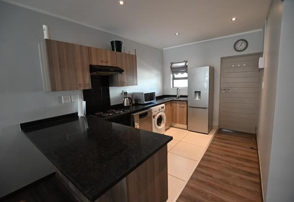 The kitchen is well appointed, with granite countertops, an oven and hob, and space for two under-counter appliances (plumbed for both a dishwasher and washing machine). It opens to a combined lounge and dining area that leads out to a sunny, private balcony.