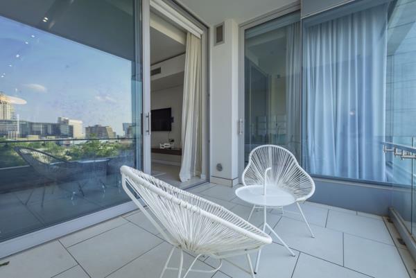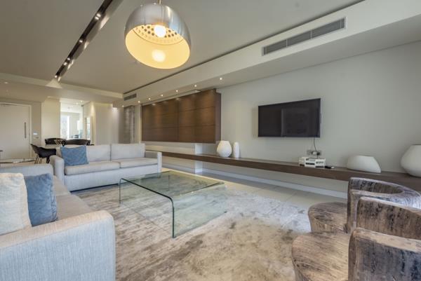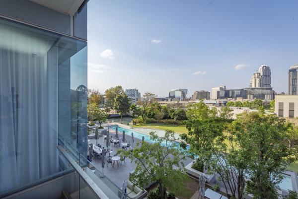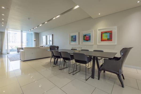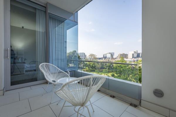 No transfer duty applicable. Price of R 9.9 mill includes VAT. Impressive apartment in iconic residential development in Sandhurst boasts high quality design and exceptional, luxury finishes. This exclusive 163 m2, generous living offers well-appointed open-plan receptions areas onto covered balcony via floor to ceiling glass sliding doors. The balcony has an uninterrupted views of Sandtons Landscape. Light and airy kitchen with breakfast nook, superior cabinets and four Smeg appliances integrated. Well sized bedrooms with ample of cupboards space, 2-semi open plan bathrooms en-suite.