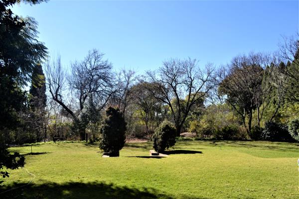 The setting is tranquil in a garden with established trees as perfect canvas for landscaping.