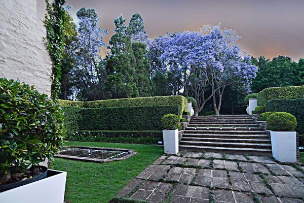 Every window, every door has views of the enchanting gardens spilling over with an abundance of white roses, jacarandas, bowers of flowering scented plants, water features with meandering brooks culminating in a feature lake.