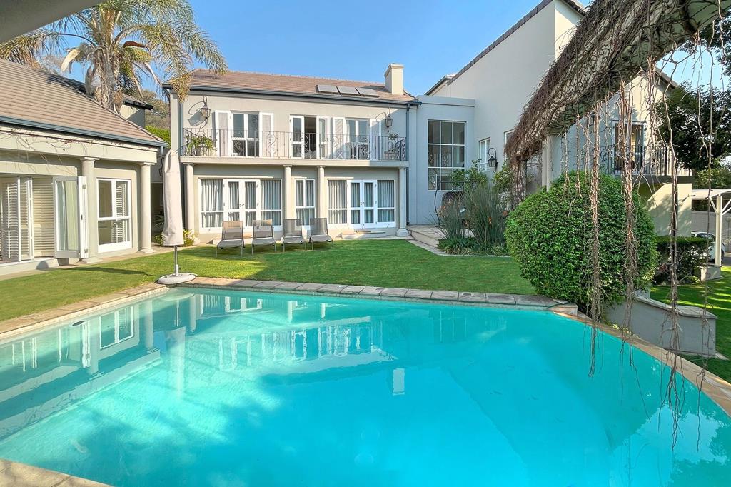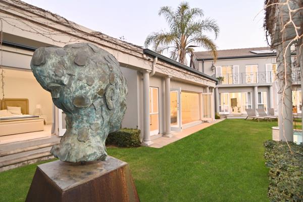 Every window and every door offer a picturesque setting where vistas of greenery, trees , water features , pool , garden and spectacular views of Sandtons skyline and beyond greets one.
