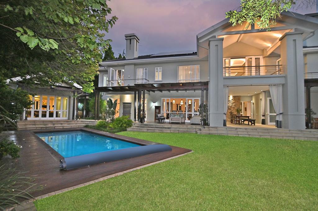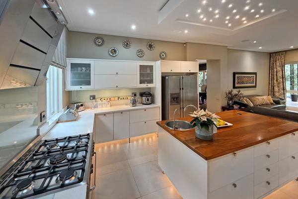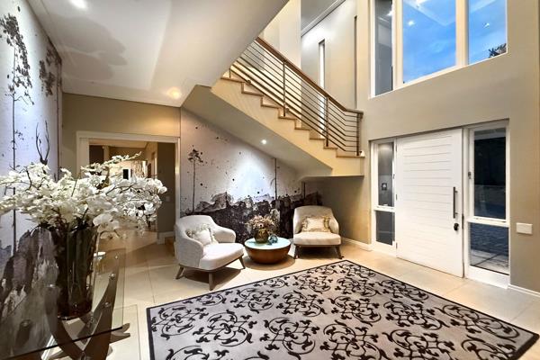 A timeless classic contemporary home, excellent security, refined elegance and sophistication - with spectacular vistas. The majestic double volume entrance sets the tone for an inviting lifestyle of effortless formal and informal entertaining. Lovingly designed in a modern style, the home enjoys breathtaking vistas of the pool and garden, abundant with flowering plants, trees and verdant greenery.