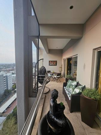 Spanning 172 sqm, the home is spread across the 11th and 12th floors, with an option to purchase fully furnished at R3 299 000, or unfurnished at R3 099 000. On the lower level, youre welcomed by an entrance hall that leads into a spacious open plan living and dining area, complemented by a modern kitchen with a large enclosed pantry. Two large sliding doors open up to a generous balcony, creating the perfect indoor outdoor flow for entertaining. Also on this floor is a versatile third bedroom or study with its own en suite bathroom, which also functions as a guest loo.