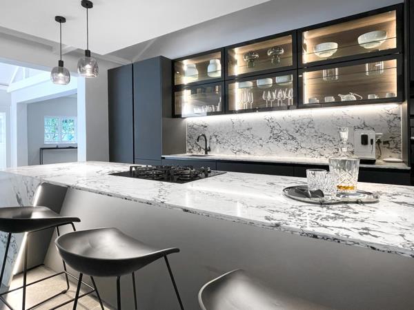 Inside the apartment, space and light dominate the atmosphere. High ceilings and expansive windows frame sweeping views of Sandhurst, allowing natural light to pour into every corner. The open-plan living and dining area provides a seamless setting for relaxation or entertaining, while the adjoining high-end kitchen is as practical as it is beautiful. Outfitted with premium appliances, sleek cabinetry, and exquisite finishes, the kitchen is enhanced by a discreet scullery that ensures effortless entertaining and everyday convenience.