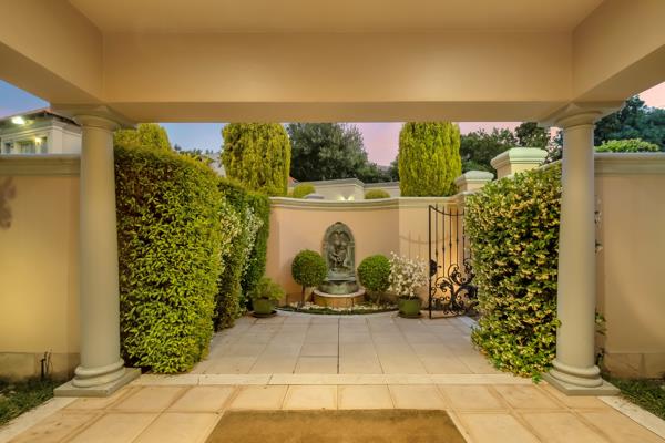 This stunning, ambassadorial cluster home has high volumes, skylights, plus large windows and sliders for lots of light. It is immaculately kept, and has a beautiful garden with a statue fountain under an archway, with roses and azaleas, and bordered with shrubs and trees for privacy. The sizeable stand allows for parking for several cars, as well as its three garages.