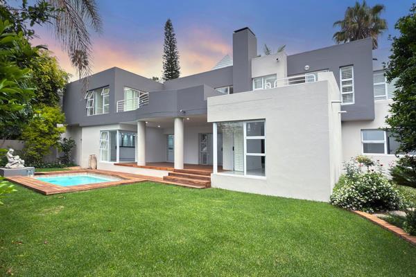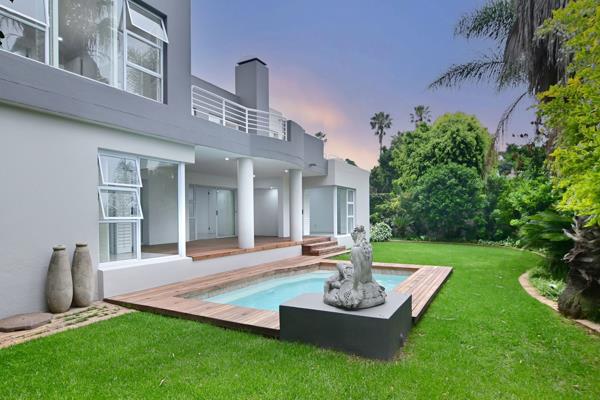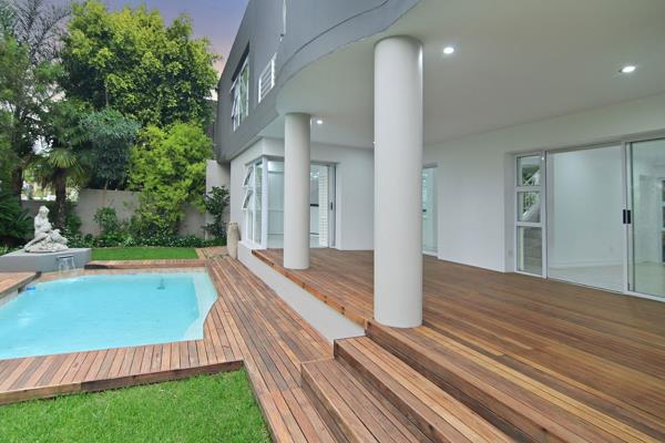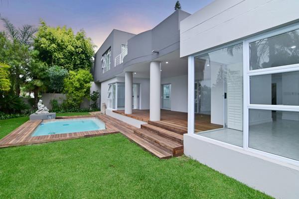 MODERN CONTEMPORARY CLUSTER HOME, 24 HOUR GUARDS, 360 DEGREE SANDTON SKYLINE VIEWS.. Modern Contemporary cluster home, set in a exceptional complex, with walking trails, cascading sounds of water, beautiful established gardens - koi pond with flamingoes - where the beauty of nature feeds one''s soul.