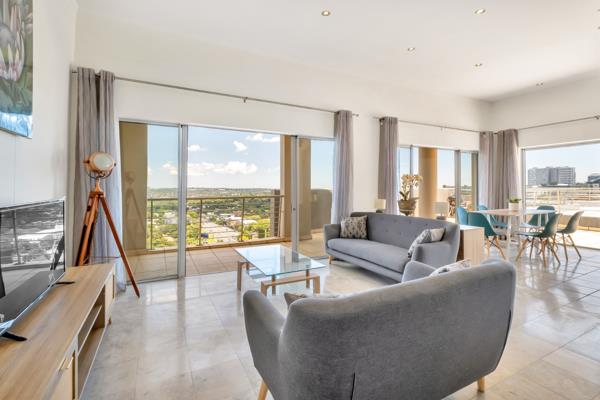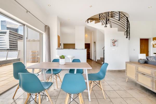 This spectacular double-volume penthouse apartment in upmarket Sandhurst Towers is up for grabs, promising the designer lifestyle you deserve. Imagine sipping sundowners under the African sunset from your rooftop balcony or waking to breathtaking views from your bedroom, of the city and suburbs below.