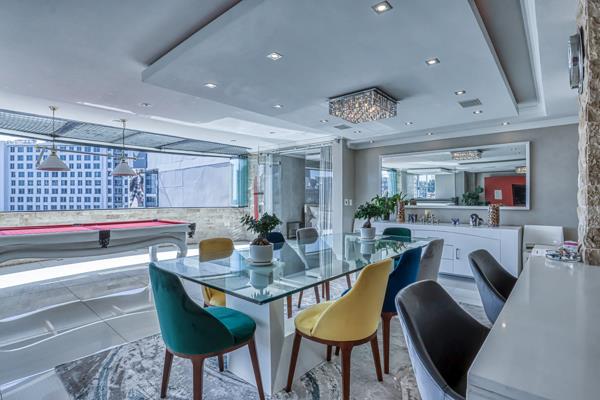 Admire the breathtaking views of Sandton City''s Central Business District from the double volume lounge, and revel in the splendor and warmth that fills this penthouse with its triple volume glass and stunning vistas. With a spacious open-plan kitchen, expansive living and dining areas, and a master bedroom en-suite, the luxuries of this penthouse are unmatched.