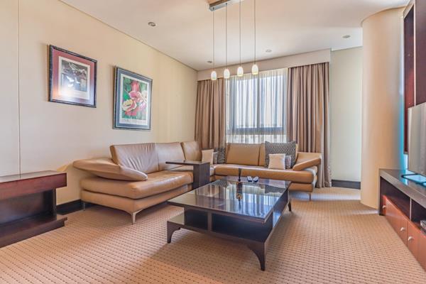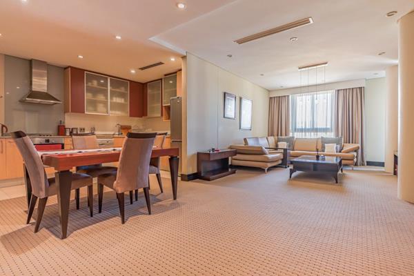 Luxurious fully furnished one-bedroom apartment available at Raphael Penthouse Suites in Sandton.
