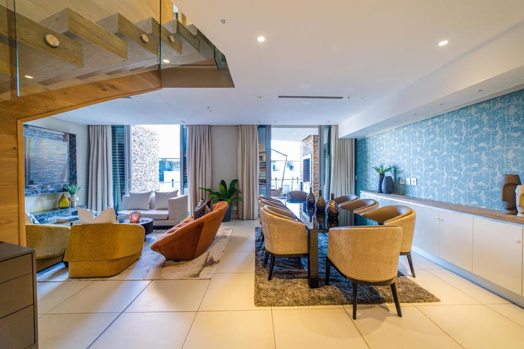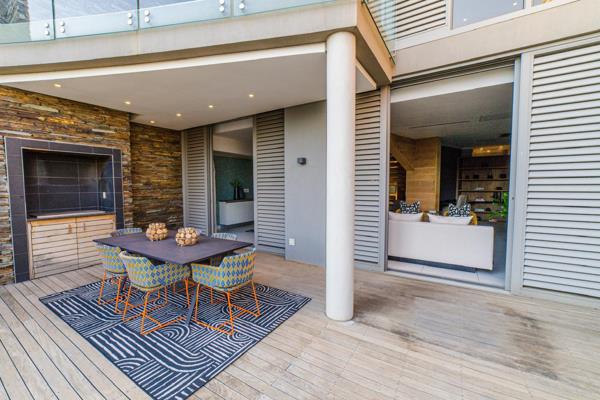 Enter through the oversized pivot door into the luxurious open-plan living area which elegantly opens through stack away doors onto a private deck and gas braai allowing for an indoor-outdoor dining experience. The upper-level features floor-to-ceiling glass doors that lead to the extensive deck with city views. The chef''s designer kitchen is replete with a large stone island, and Miele appliances.
