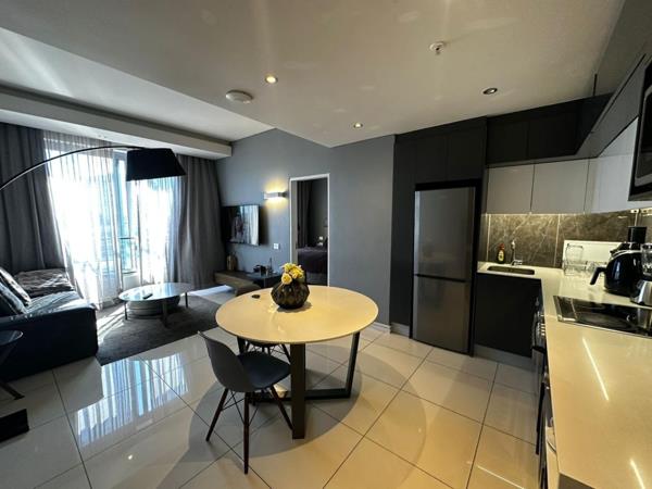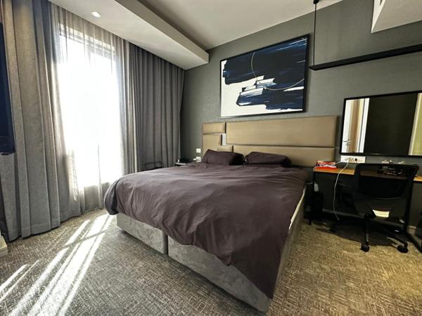 Turn-key, fully-furnished 1-bed, 1-bath apartment-hotel unit at The Capital On The Park in Sandown, Sandton steps from Sandton City, Nelson Mandela Square and the Gautrain Station on Katherine Street. Owners and guests enjoy full hotel amenities: lap pool and jet pool with deck and champagne bar, Technogym fitness centre and on-site spa, in-house restaurant, coffee shop & Grab-and-Go deli, conference centre, room service, daily cleaning, valet, complimentary high-speed Wi-Fi and secure parking with 24-hour controlled access. The on-site one-bedroom apartment spec includes a full kitchen, living/dining area and balcony ideal for both short and long stays. Enjoy full hotel amenities: lap pool and jet pool with deck and champagne