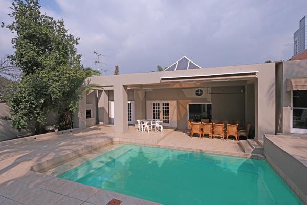 Amazing potential in the heart of Sandown. Come and view this gem of a simplex cluster where light and space are the key words. Come live and enjoy or with little remodeling have the most stunning modern home. 3 Baronial receptions. Huge chefs kitchen and scullery. 3 Spacious bedrooms and 3 bathrooms (mes) plus guest cloakroom. Beautiful patio and garden plus pool - set in perfect position in complex. Double garage and plenty additional parking. Walk to Gautrain Stops. Close to schools, shops, gym, and many other major conveniences.