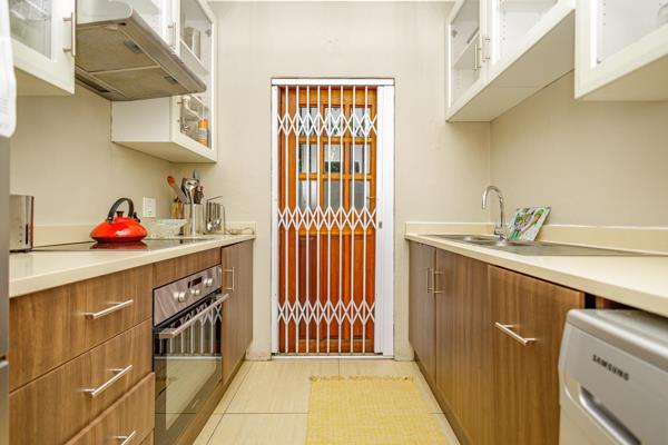 Two bedrooms can be found in this delightful apartment. The main bedroom being the larger of the two, looks out onto the beautiful garden. The second bedroom is also spacious and fitted with built in cupboards. Both bedrooms have been finished with laminated wooden flooring. The shared full bathroom is a mini masterpiece. Signature tiling found on the floors, in the shower and around the bath is complimented by the fitted basin vanity and mirrored medicine cabinet found in similar tones. A guest toilet completes the apartment.