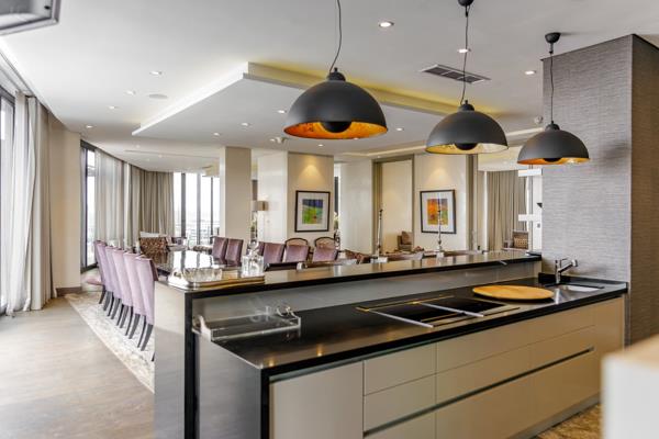 Experience the ultimate in luxury living in the Da Vinci, located in the heart of the Sandton CBD. This 635sqm2 Penthouse encompasses a large living area which includes a TV Room, Lounge, Study area, Dining areas, plus a gourmet kitchen which is central to the penthouse.