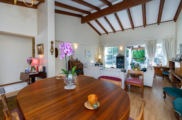 Enter the unit into a little courtyard and then into an entrance area. The living spaces has high ceilings, giving an airy and spacious voluminous feel to this home. A covered patio leads off this area out onto a magnificent private garden and beautiful pool.