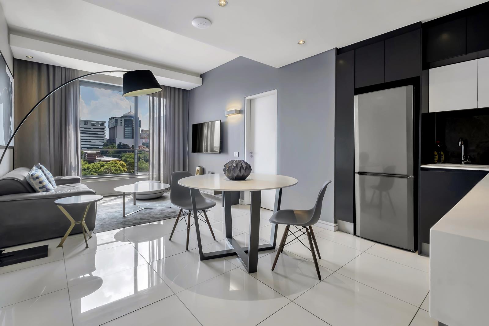 Residents have access to an array of five-star amenities: a resort-style pool overlooking scenic Mushroom Park, an on-site restaurant perfect for casual or formal dining, well-appointed conference facilities, and 24-hour room service. Secure underground parking offers peace of mind in the heart of Sandton.