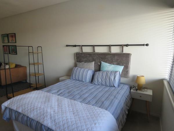 The unit is on the 3rd floor and offers a keycard system to unlock, has an equipped kitchen , open plan lounge with sleeper couch and space saver desk/dining table. The bedroom is positioned at the end of the room providing some privacy, with a flatscreen TV. A spacious bathroom with shower, basin and toilet.