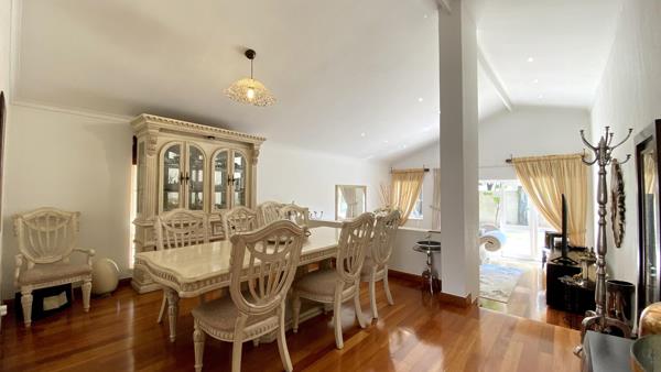 The home invites you into a warm and tranquil environment with high ceilings and bright natural lights entering and brightening up every room. A classic open plan layout of the dining and lounge area leading to the open patio into the garden and access into the sparkling swimming pool. When entertaining your friends/family/guests they are accommodated with a secluded guest loo. The home is in a decent condition throughout with classic finishes. Wooden floors throughout in the bedrooms and entertainment areas.
