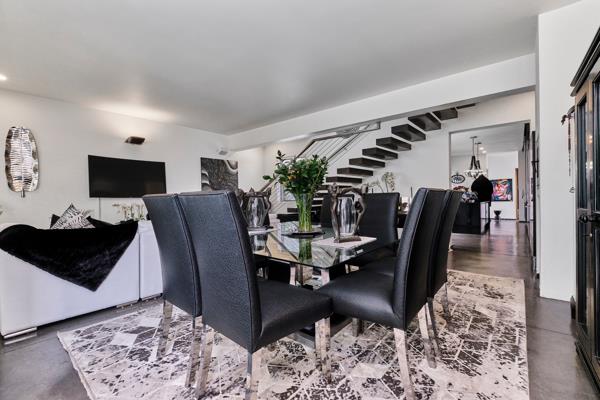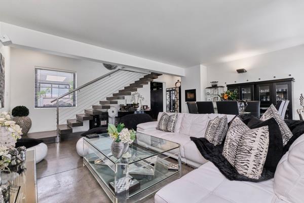 The state-of-the-art kitchen is a culinary dream, featuring integrated appliances and flowing effortlessly onto an expansive covered terrace, complete with a built-in BBQ. The sweeping staircase leads to the magnificent main bedroom, boasting ample cupboard space and a luxurious bathroom. Two further en-suite bedrooms bask in an abundance of natural light.