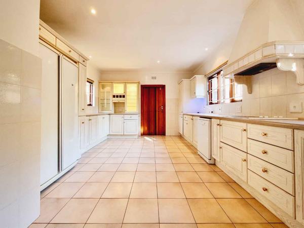 The well-appointed kitchen is both spacious and functional, complete with an eye-level oven and direct access to a private courtyard and domestic quarters.