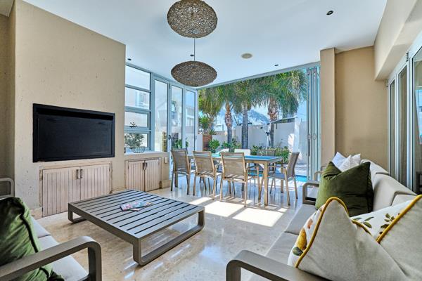 The plush family /TV room has aluminum stacking doors opening up onto the braai patio with sun decked pool and a compact garden area.