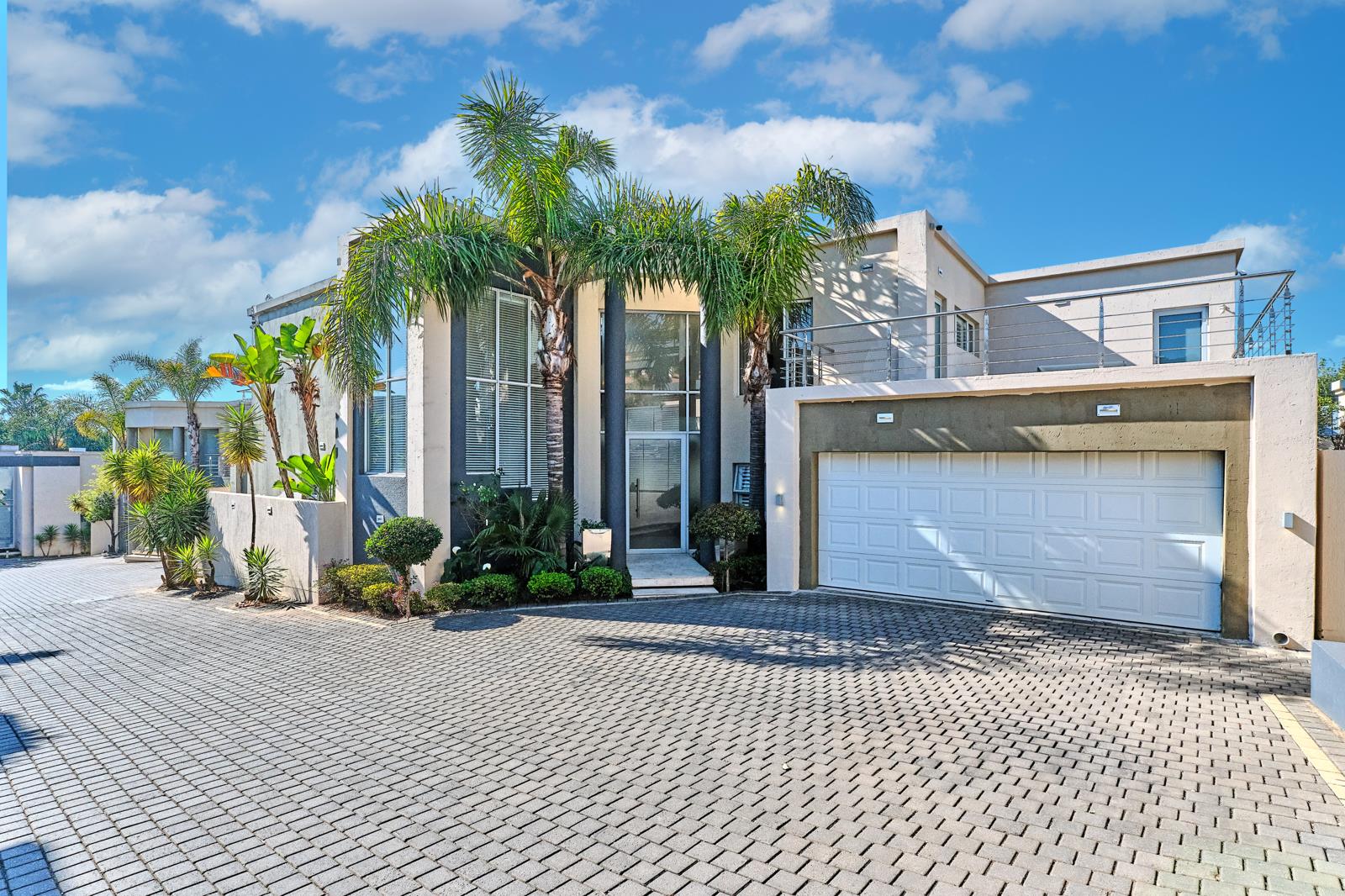 Extras include stunning lighting features, bulk head ceilings, travertine tiles, quality wood strip flooring, a double volume entrance with chrome and marble staircase, home automation system, full fibre, fitted alarm system, white wooden shutters, cavity doors, storage room.