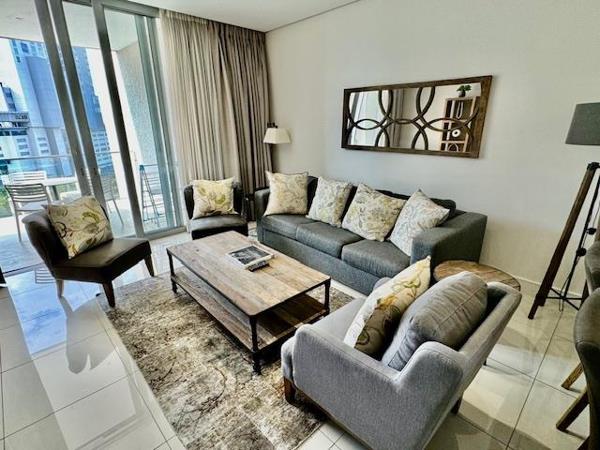 Beautiful UNFURNISHED spacious 2 bed 2 bath 9th floor apartment situated in Sandton CBD.