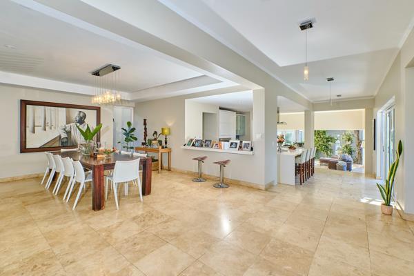 4 Baronial double bedrooms (all en suite) with generous cupboard space. Main has to be seen to be experienced. Vast with walk through his and hers cupboards and exquisite full bathroom. In addition beautiful staff accommodation, double automated garage, underfloor heating throughout, solar and JoJo tanks make it virtually off the grid. Huge pool with solid cover plus large enchanting garden is appreciated by resting on the large peaceful undercover patio. An entertainer''s dream. All this in a super elite 24 hour guarded cluster complex. If you have an appreciation for finer living please arrange a private viewing with us. Do not miss out.