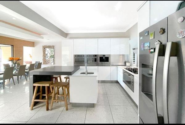 Inside, youll find three lounges, including one upstairs, and a double-volume entrance that creates an inviting atmosphere. The open-plan kitchen and dining room cater to culinary enthusiasts, featuring two ovens, a gas stove, a built-in microwave, and a state-of-the-art built-in coffee machine. This setup is perfect for entertaining guests or enjoying quiet family evenings.