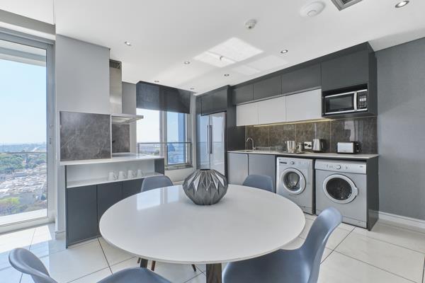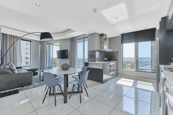 Experience the best of Sandton living in this rare, corner two bedroom fully furnished apartment, where contemporary design meets effortless comfort, offering a seamless turnkey lifestyle. Set within one of the citys most desirable lifestyle addresses, this residence offers an ideal blend of luxury, convenience, and panoramic views stretching to the Magaliesberg Mountains on a clear day.