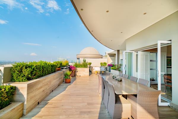 The presidential primary suite is a sanctuary of modern luxury, complete with its own gym room, a luminous walk-in dressing room, and direct access to the terrace. Its spa-inspired marble bathroom features double vanities, a soaking tub, and a glass-enclosed shower. The remaining bedrooms mirror this refined aesthetic with plush carpeting, high ceilings, marble finishes, and underfloor heating for Highveld winter comfort. Outdoors, the terrace becomes an entertainers dream, offering undercover dining, a casual lounge, a built-in braai, jacuzzi, and outdoor steam room, perfect for sunset gatherings or relaxed weekend hosting. Additional premium features include smart home technology with integrated air-conditioning and sound system, white Californian shutters, 8kVA inverter with battery backup, generator, JoJo water tanks, secure vault, undercover parking for four cars, three staff rooms combined into one large suite, and access to the complexs indoor pool plus 24-hour manned security. This penthouse is not simply a residence it is a statementwhere luxury, innovation, and exclusivity converge at the highest level of urban living.