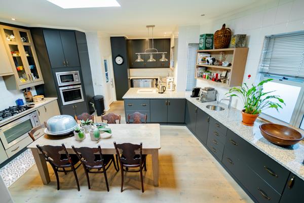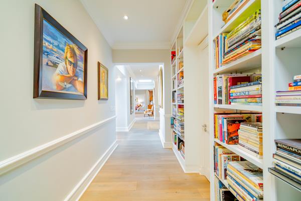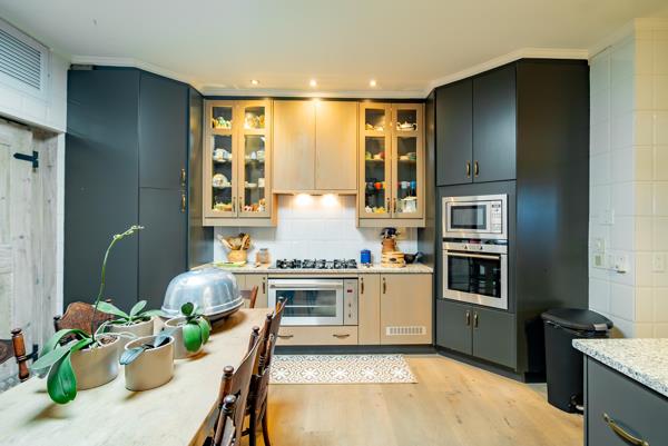 Lofty ceilings, deluxe wooden flooring, skylights, and panoramic 180 views frame an expansive layout that includes three luxurious entertainment rooms: a formal lounge with a towering gas fireplace, a TV room, and a 12-seater dining space. Floor-to-ceiling glass stacker doors fold open to reveal a full-length terrace, creating seamless indooroutdoor flow. The chefs kitchen is a state-of-the-art masterpiece, featuring custom cabinetry, Siemens integrated appliances (including gas hob, two ovens, and microwave), granite countertops, a walk-in cold room, wine cellar with double-volume cascading racks, and a generous scullery area. A tranquil study nook and private reading zone lead to one of the three en-suite bedrooms, each positioned in separate zones of the home to ensure absolute privacy and comfort.